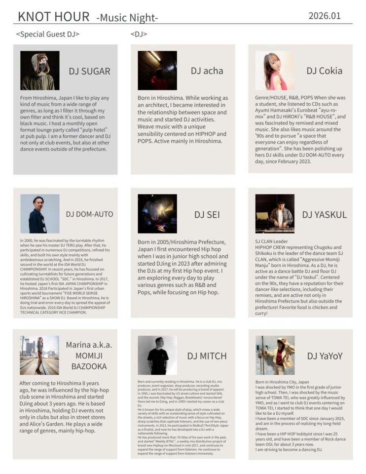 ●January 10 (Sat) DJ YASKUL / DJ MARINA aka MOMIJI BAZOOKA / DJ MITCH