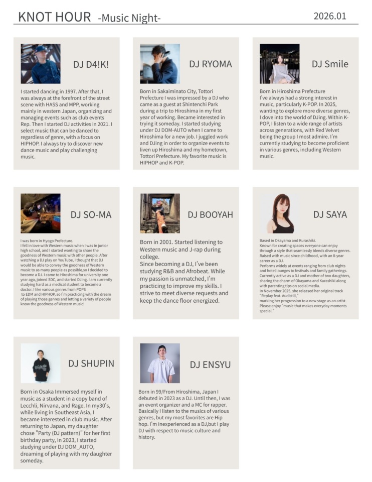 THE KNOT HIROSHIMA holds “KNOT HOUR -Music Night-” every Saturday.