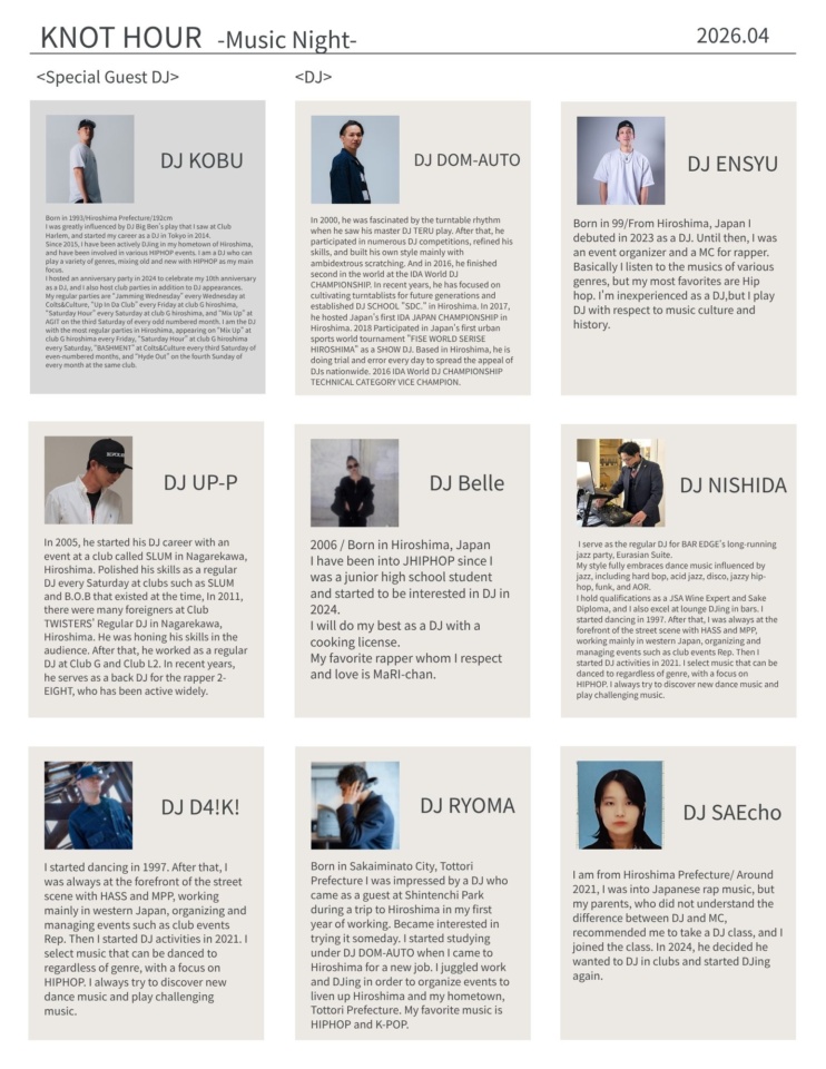 ●April 4 (Sat) DJ DOM-AUTO/DJ ENSYU/DJ UP-P