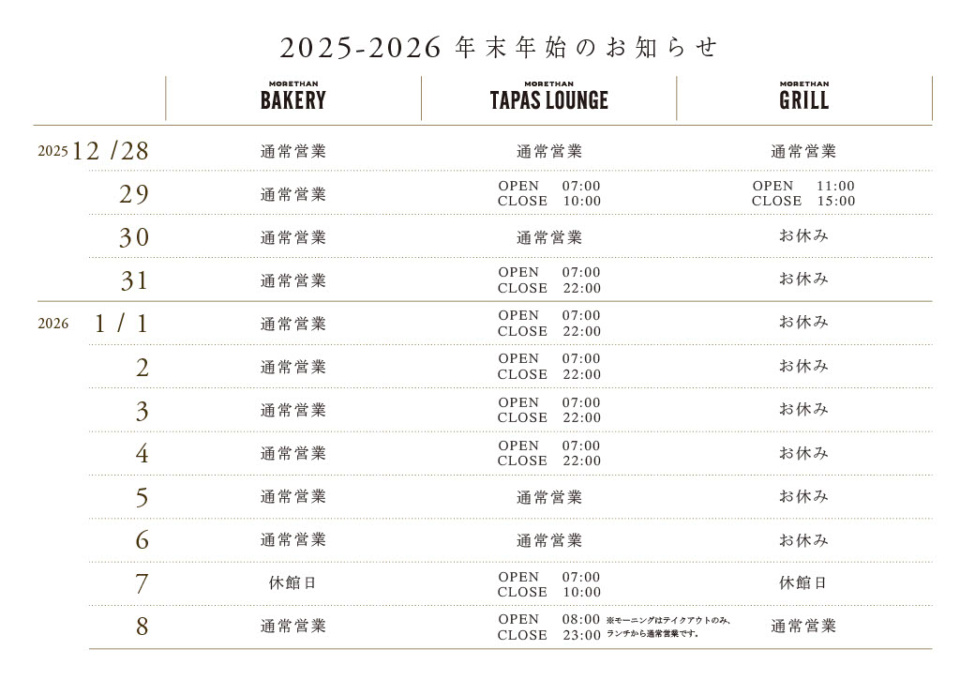 MORETHAN 年末年始営業時間変更のご案内