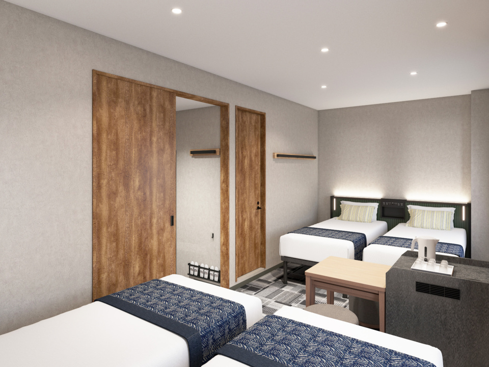 客室を1階に配置し、フロントや朝食会場、ランドリールームに近い機能的なお部屋となります。