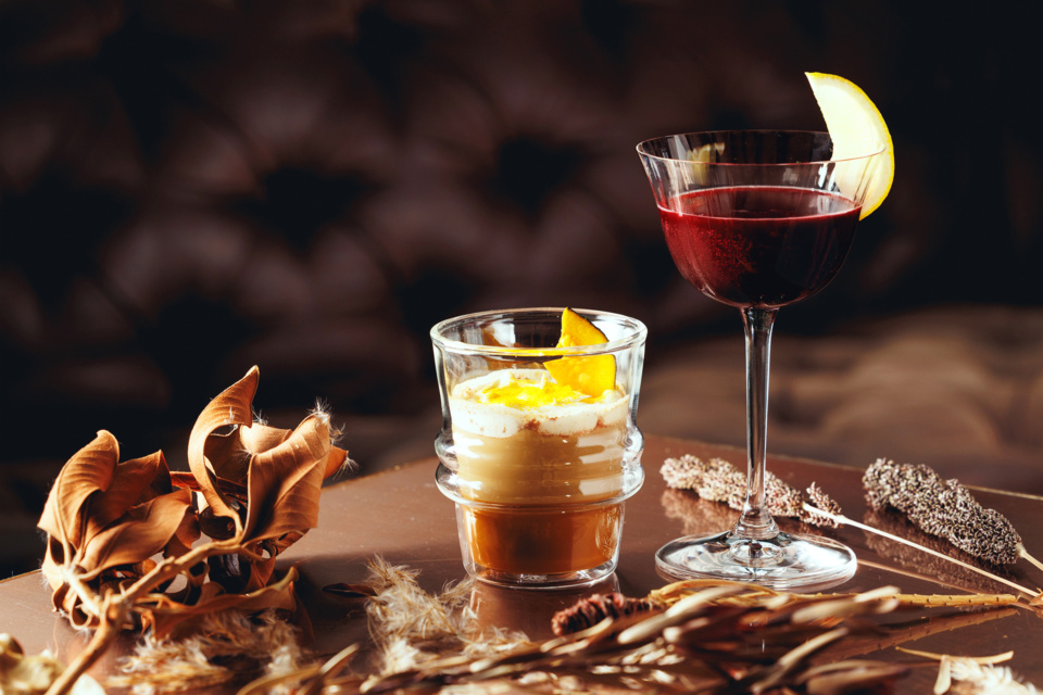 ハロウィンカクテルは、ブルーベリーの甘酸っぱさとグレープフルーツのほろ苦さを重ねた「Purple Haze」と、かぼちゃの優しい甘さにエスプレッソとメープルを合わせ、シナモンを効かせたホットモクテル「Witch Pumpkin」の2種類。