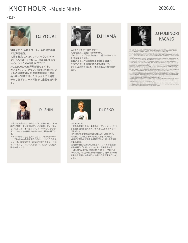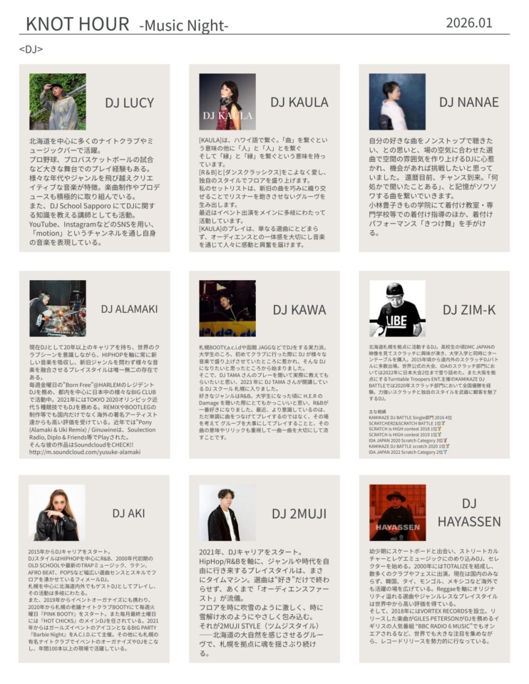 札幌を中心に活躍するDJたちが集結。ライブ感のあるサウンドを味わえます。